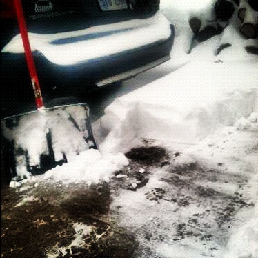 The image below might give you some idea, bass player Dan has done a better job clearing his car out, but that doesn’t help him get out of his cul-de-sac which is pretty impassable. In other news – sledding!!